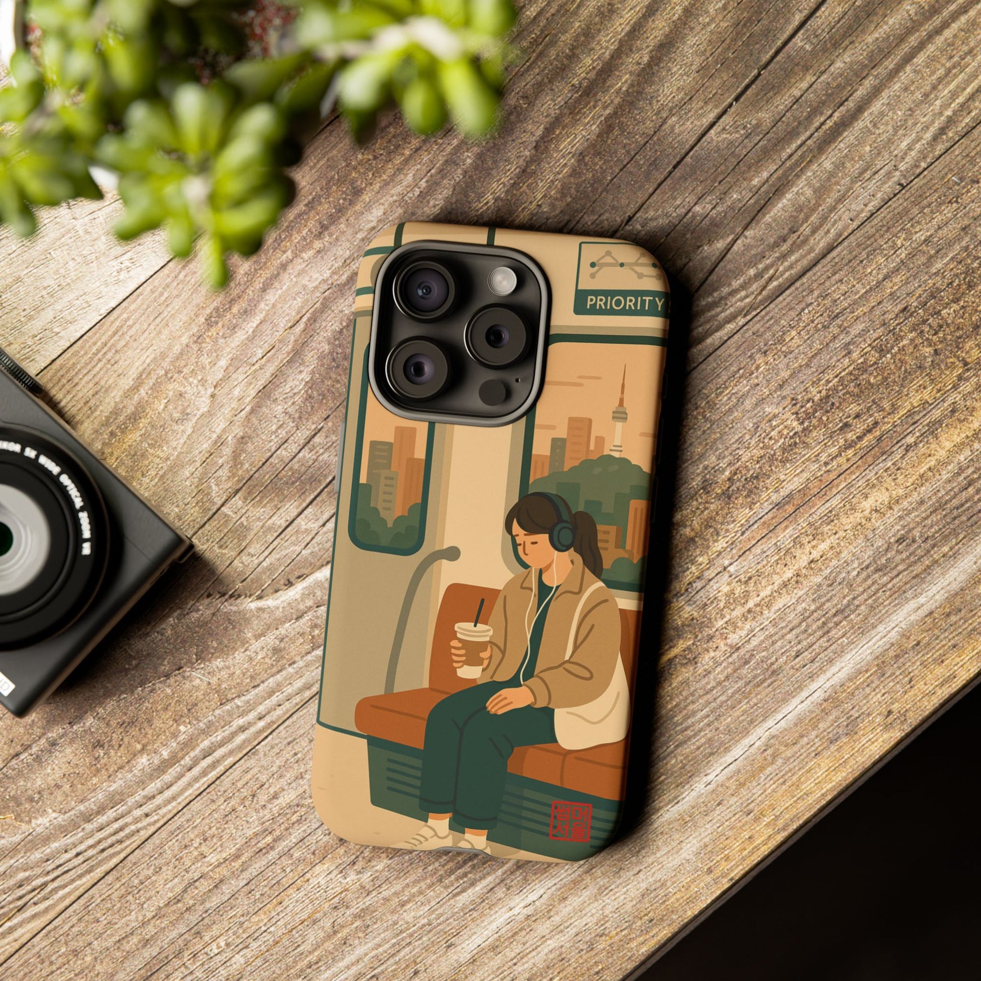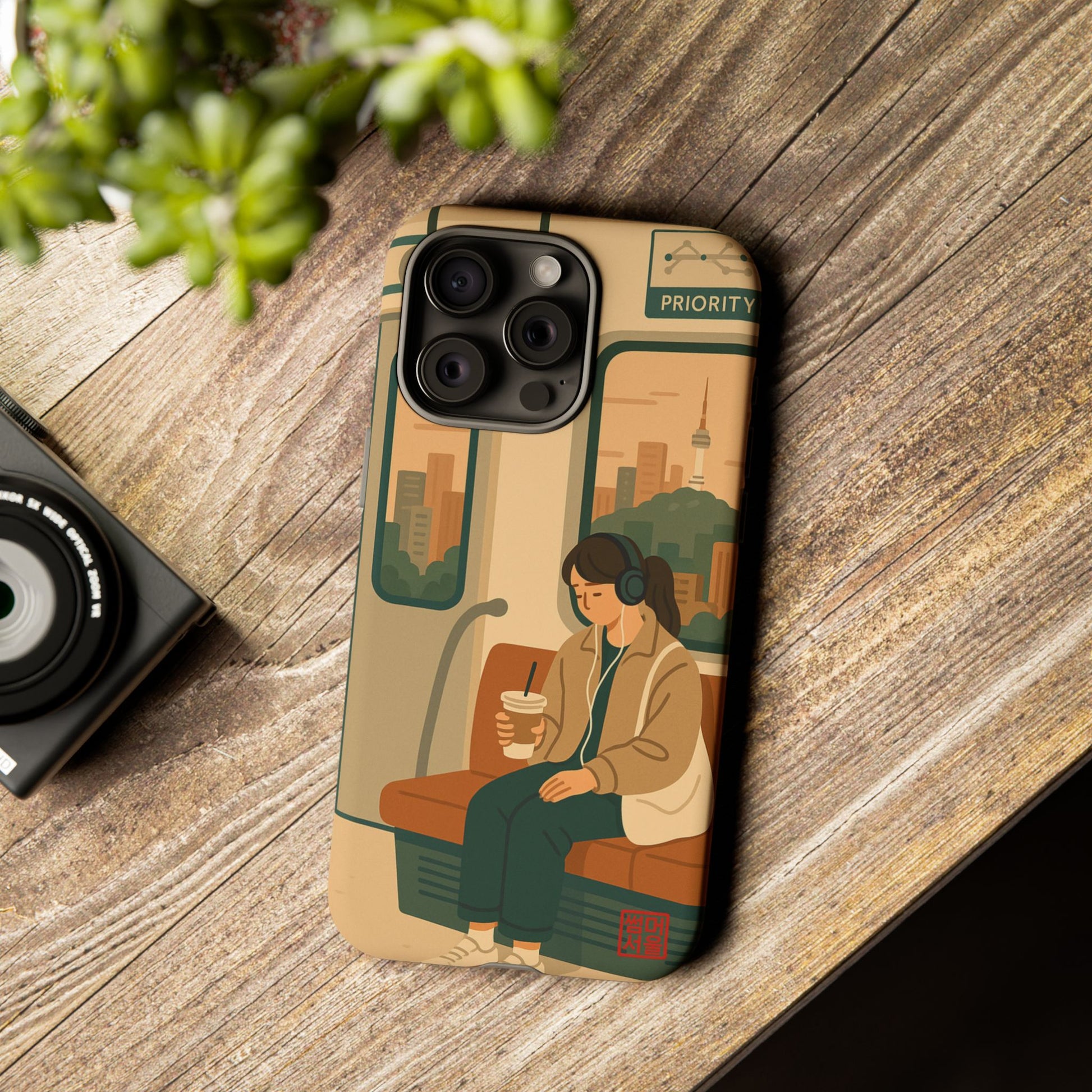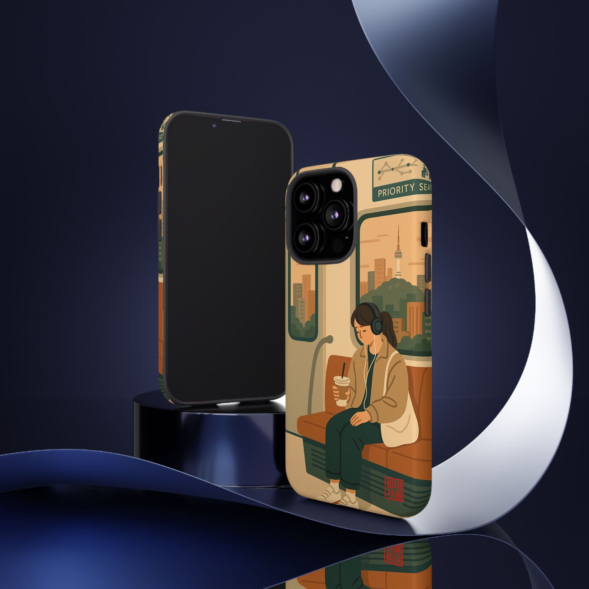 Daily Calm, Urban Flow. The Afternoon Line Tough Case blends strong protection with soft storytelling — a peaceful subway scene where city motion pauses for a moment of stillness. With Namsan Tower in the background and warm afternoon light, this design feels personal, grounded, and unmistakably Seoul.