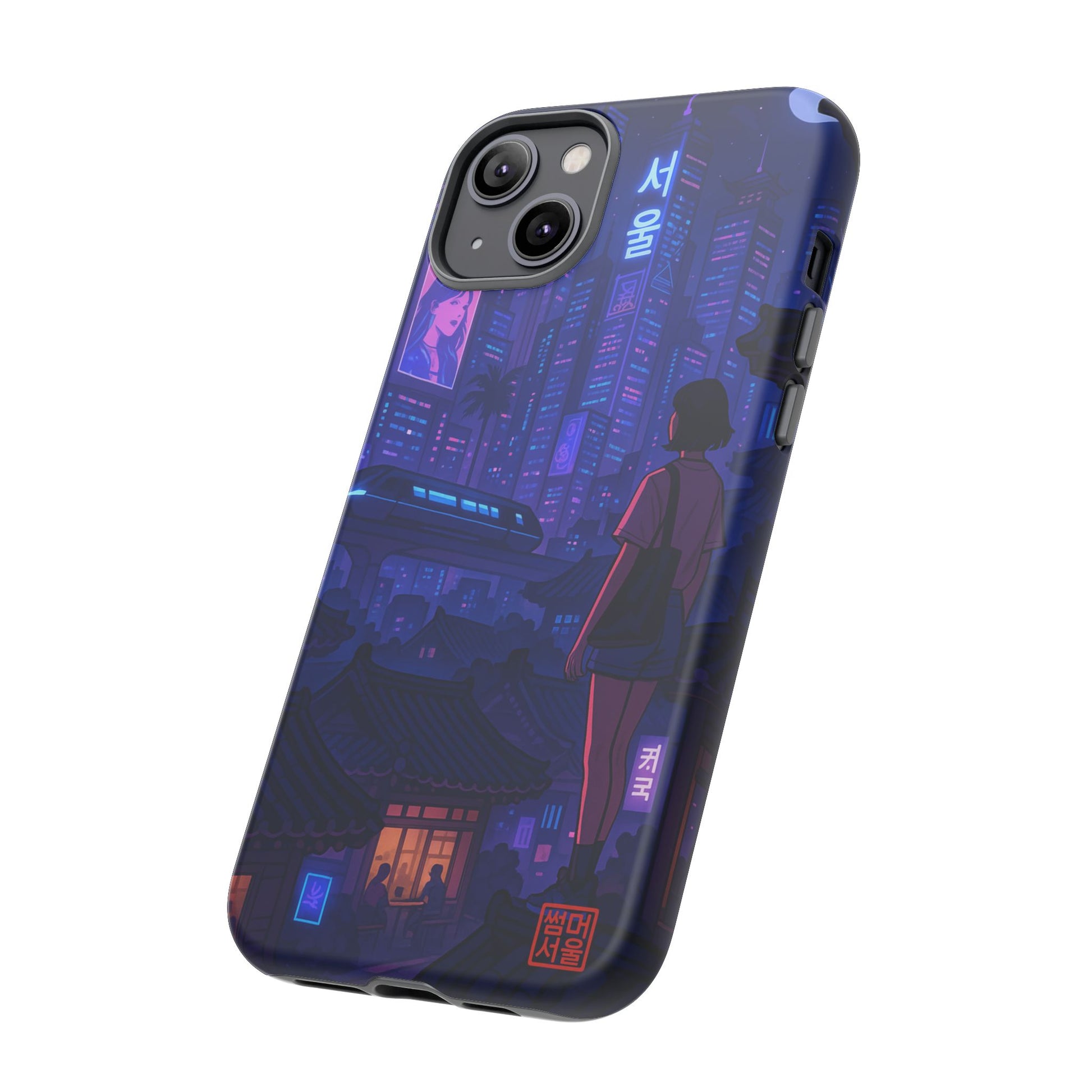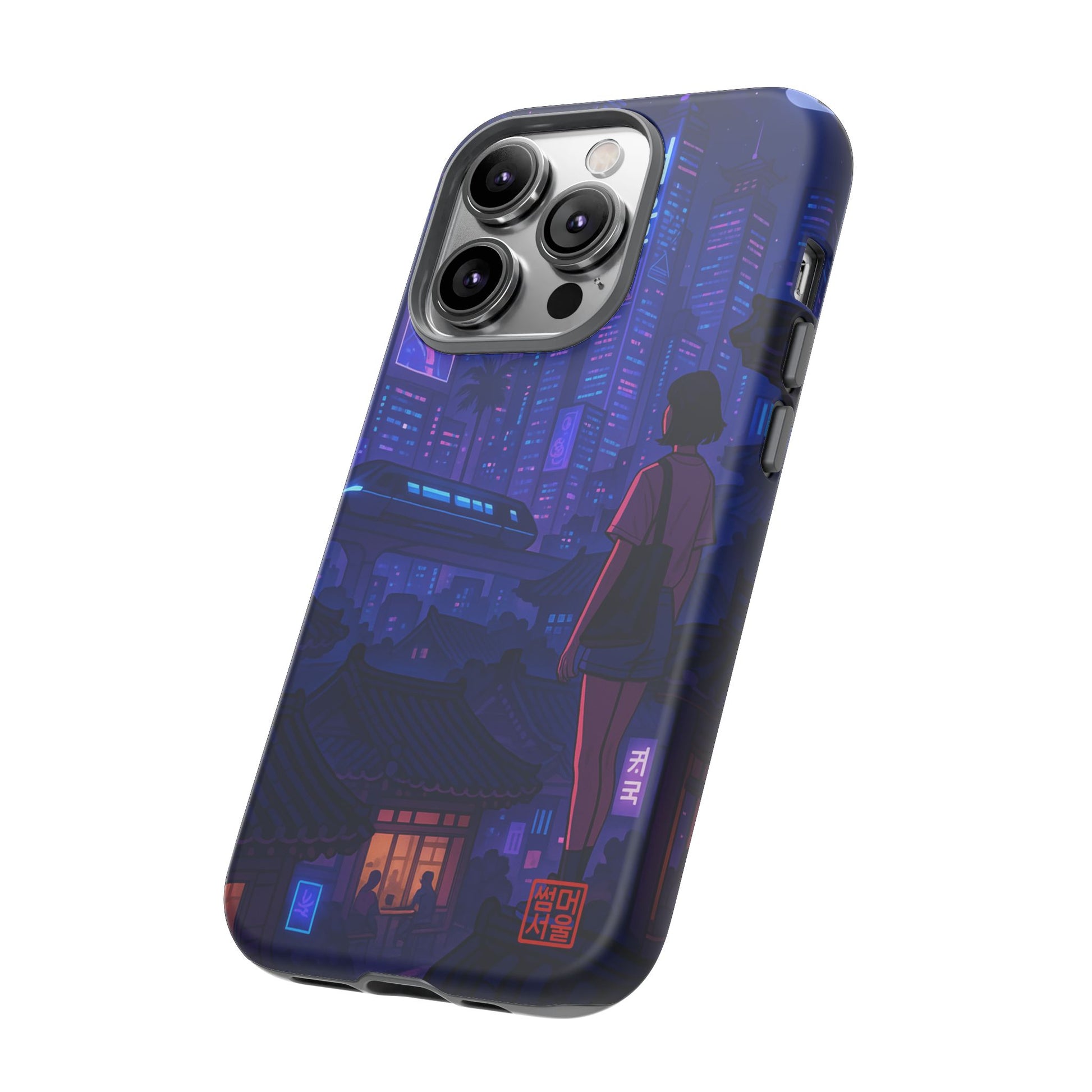 Futuristic Seoul, Timeless Edge. The CyberSeoul Tough Case fuses next-gen protection with a cinematic scene of neon skyscrapers, maglev trains, and hanok rooftops glowing beneath a midnight sky. It's a bold tribute to the harmony between Korea’s future and heritage — built for the dreamer, the explorer, and the city soul.