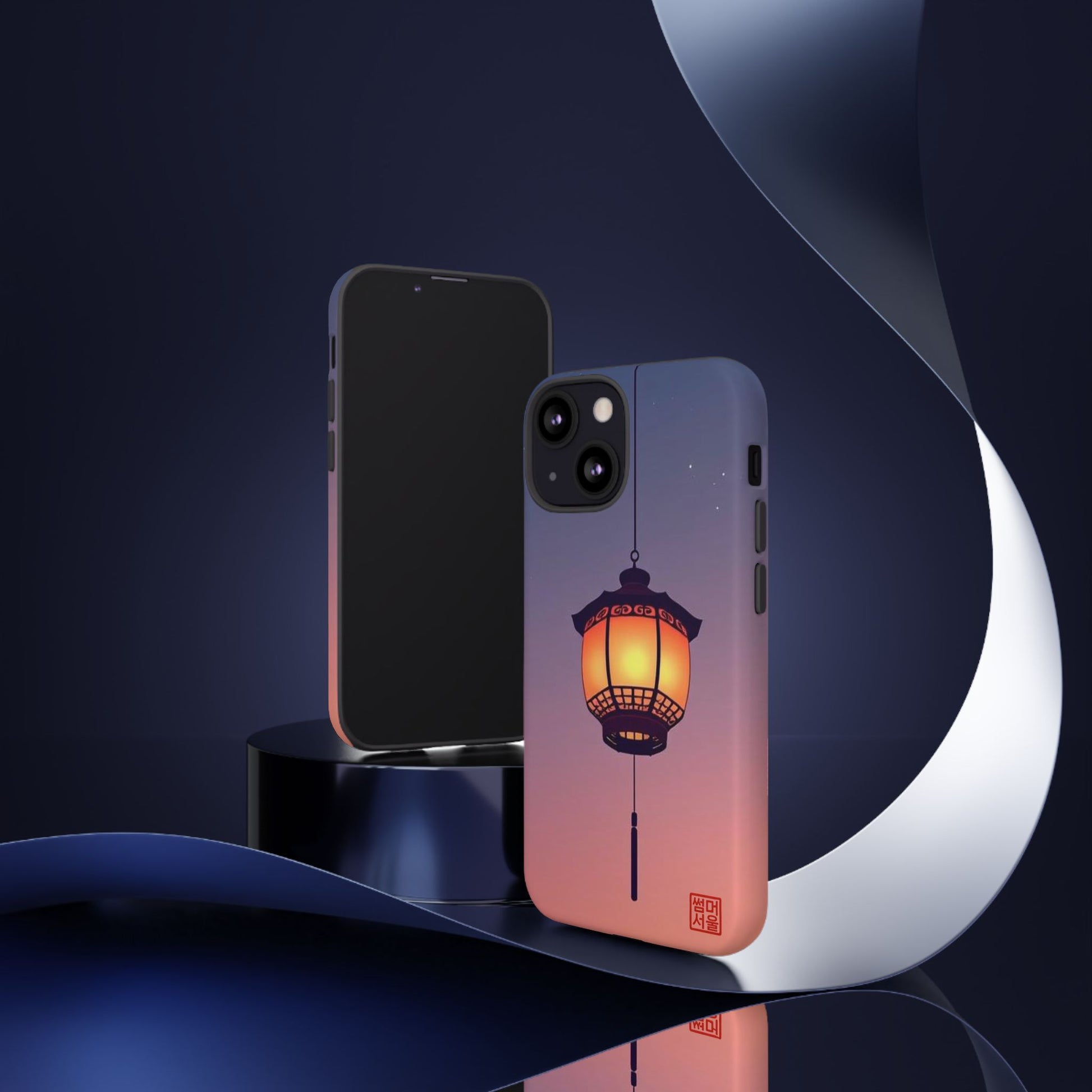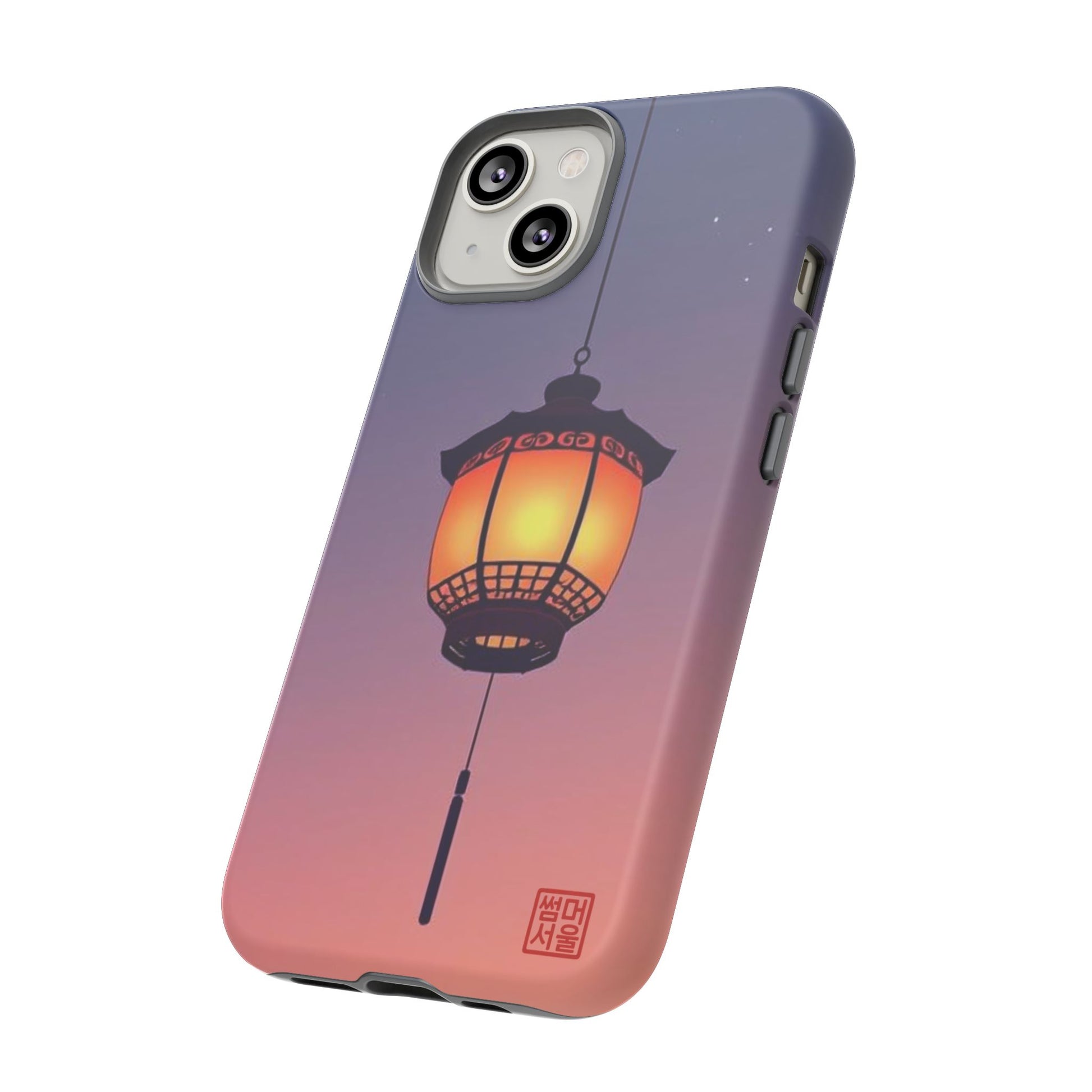 Let warmth and calm follow you everywhere with the Evening Glow Lantern Case. This serene design captures the soft ambiance of a traditional Korean lantern suspended against a twilight sky, blending deep purples and peachy hues for a peaceful, dreamy look.