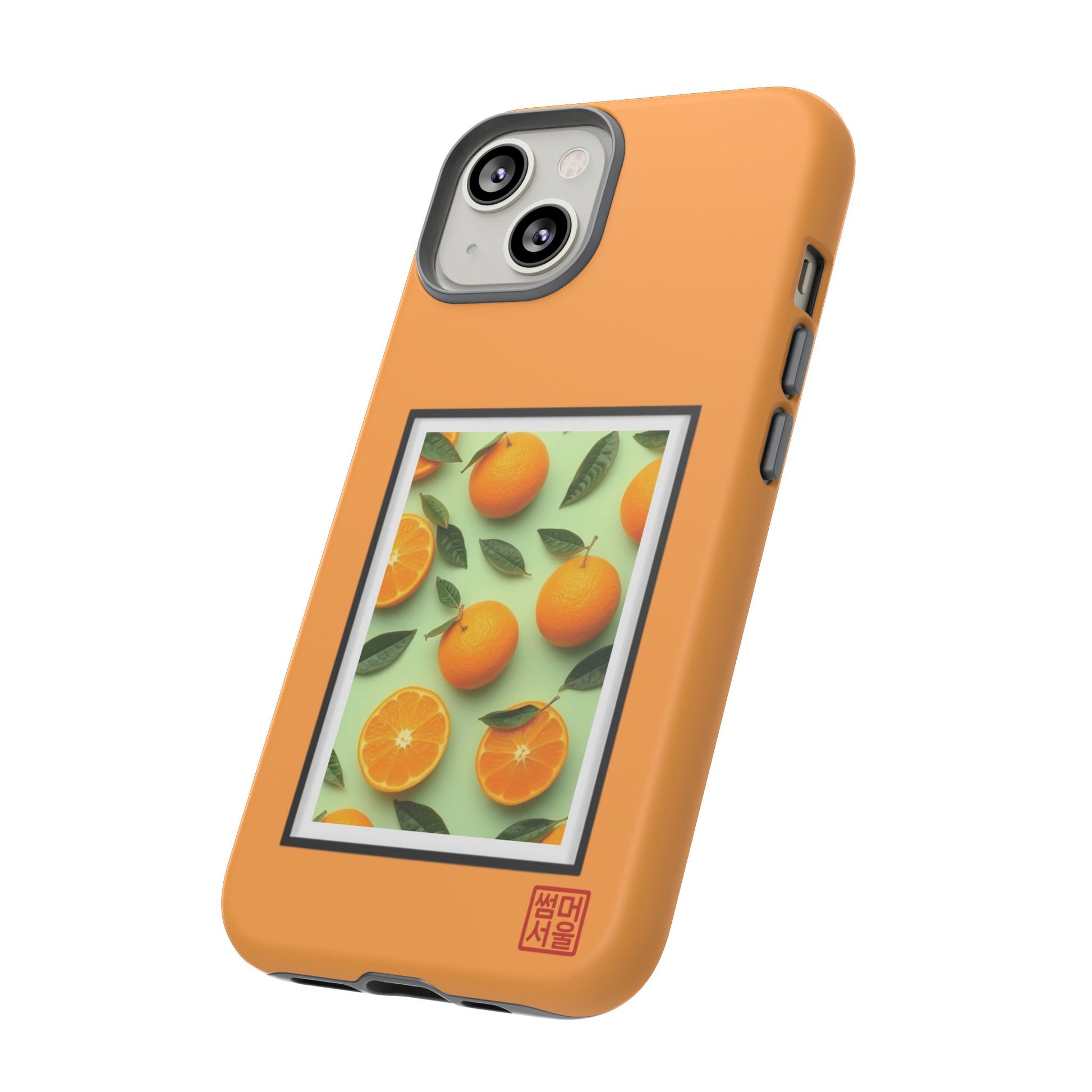 Fresh Flavor, Bold Design. The Jeju Slice Tough Case features a framed image of vibrant Korean tangerines set against a smooth citrus-orange base. Inspired by Jeju’s famous gyul, this case is all about zest, simplicity, and daily protection with a juicy attitude.