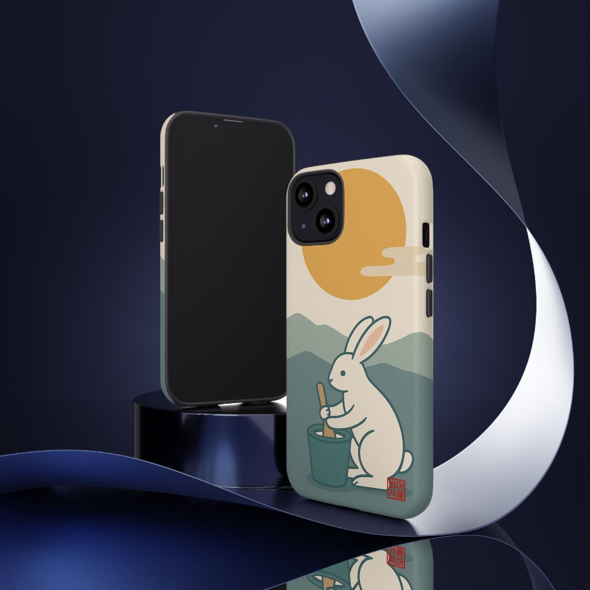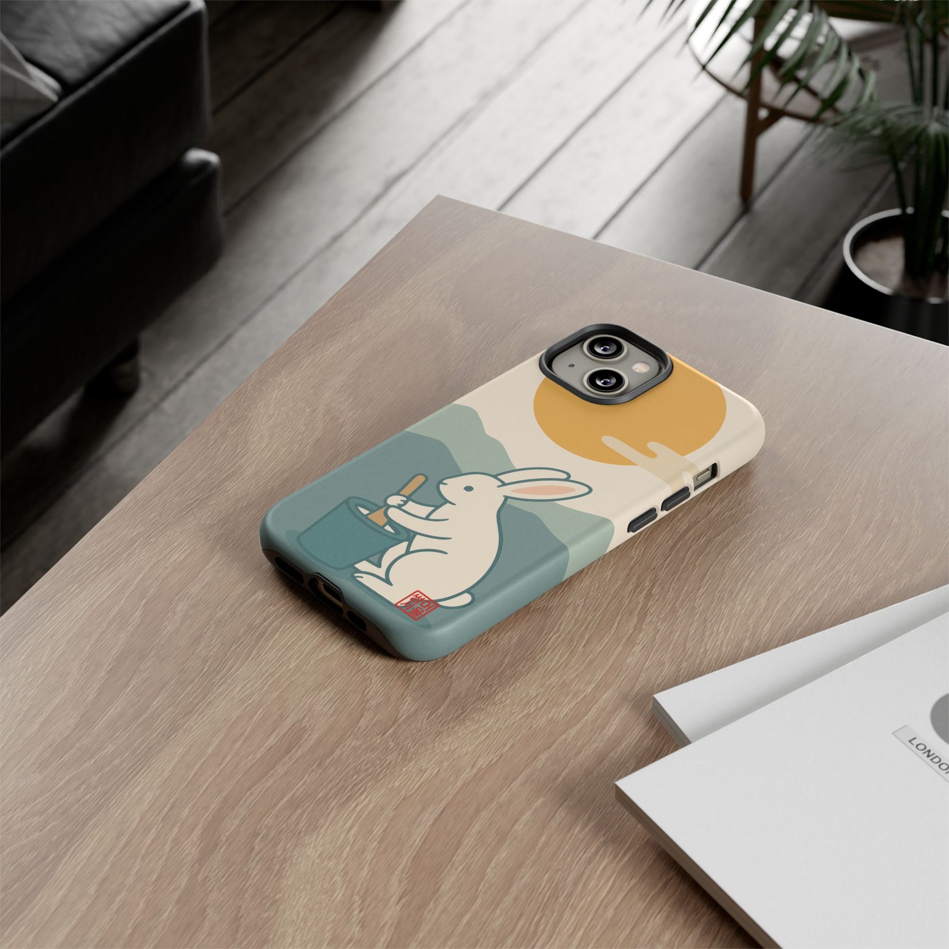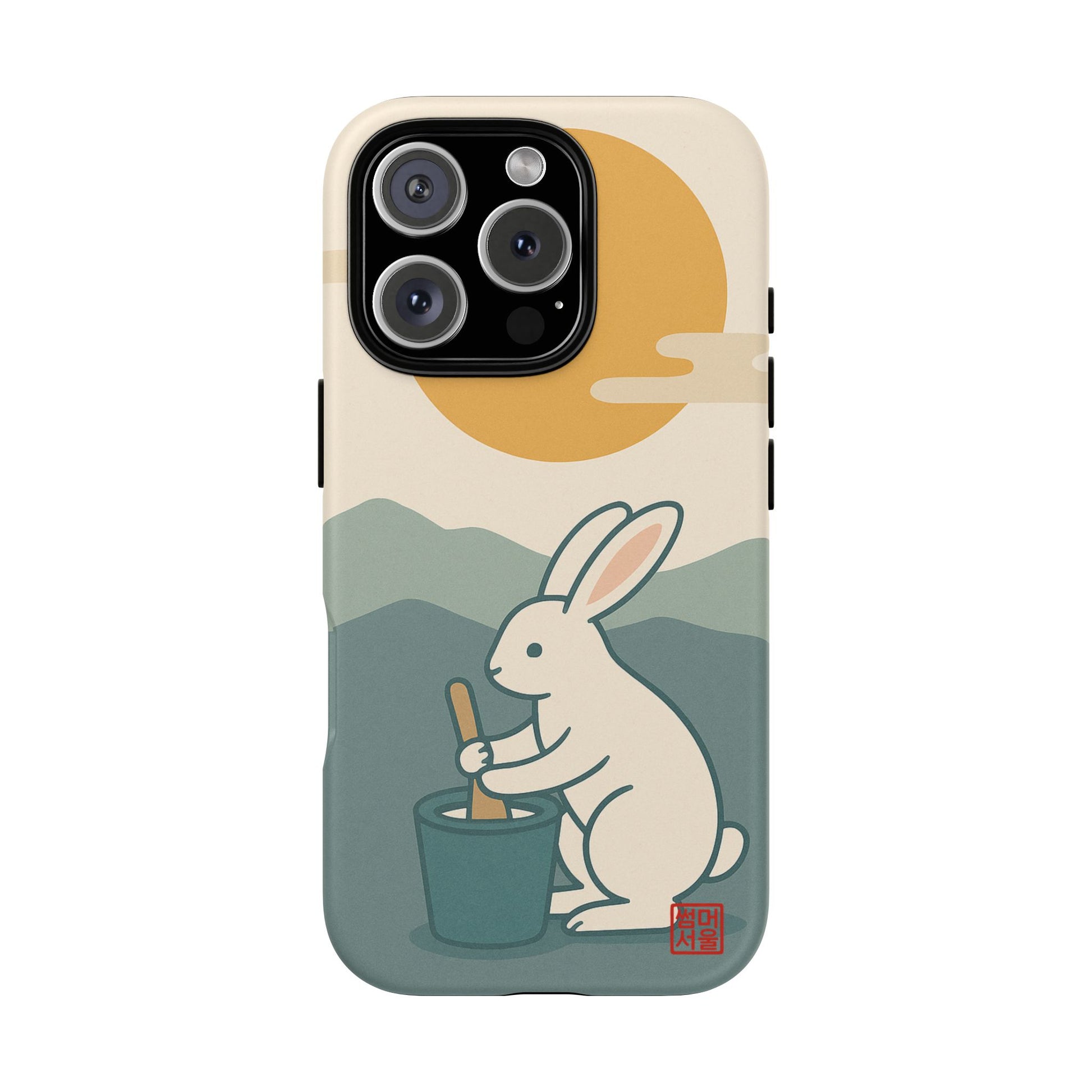 Folklore Meets Function. The Moon Rabbit Tough Case brings Korea’s beloved lunar legend to life — featuring a serene white rabbit crafting rice cakes beneath a golden sky. With calming tones and durable design, it’s a nod to heritage wrapped in modern protection.