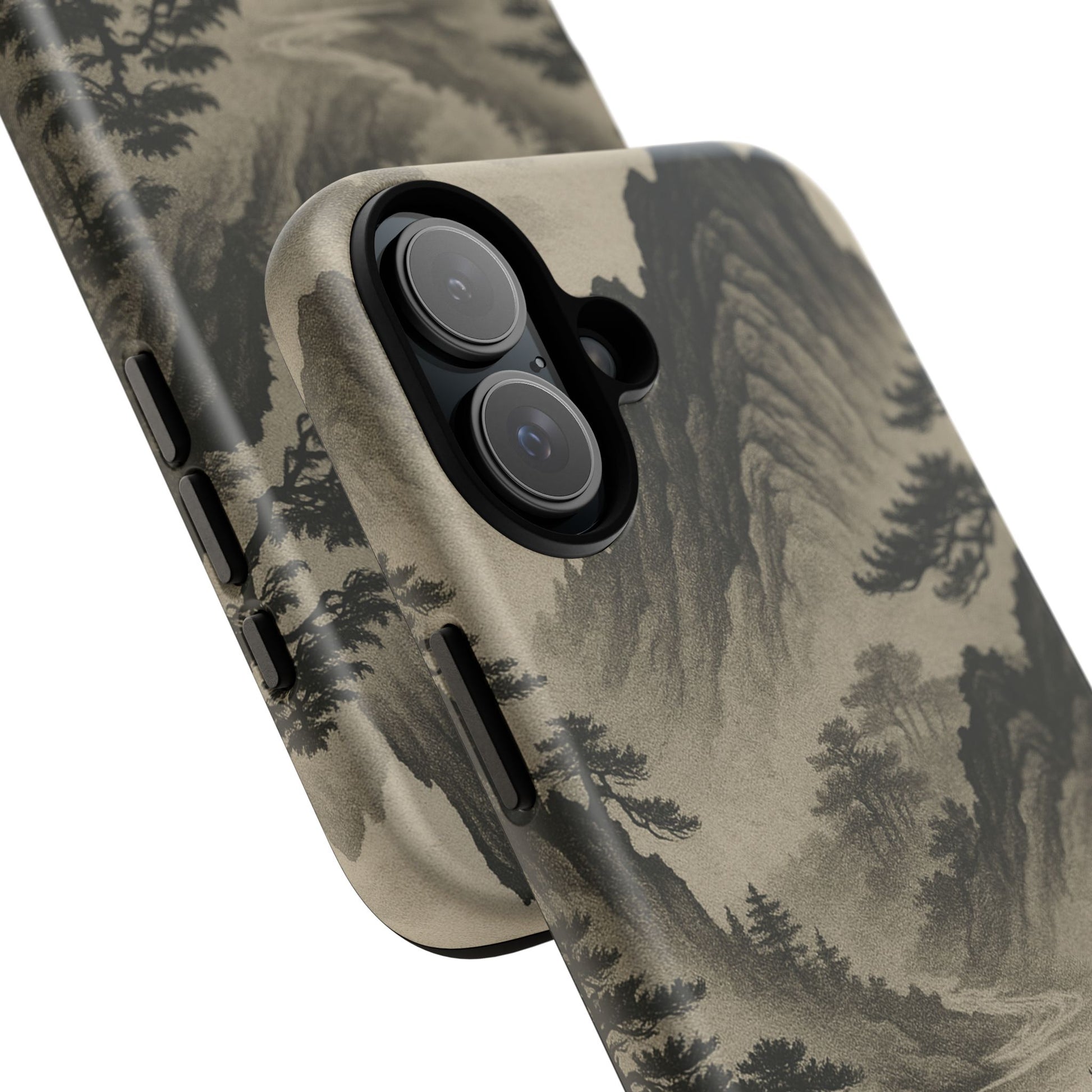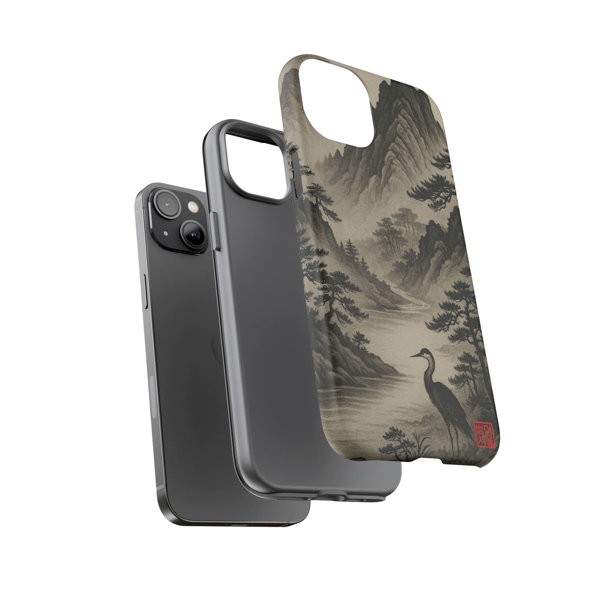 Timeless Stillness, Protective Grace. The Mountain Stillness Tough Case pairs durable modern protection with the soul of a Korean ink landscape. Featuring soaring mountains, layered mist, and a lone crane by the riverbank, this design speaks of harmony, patience, and natural beauty — a quiet strength in your everyday carry.