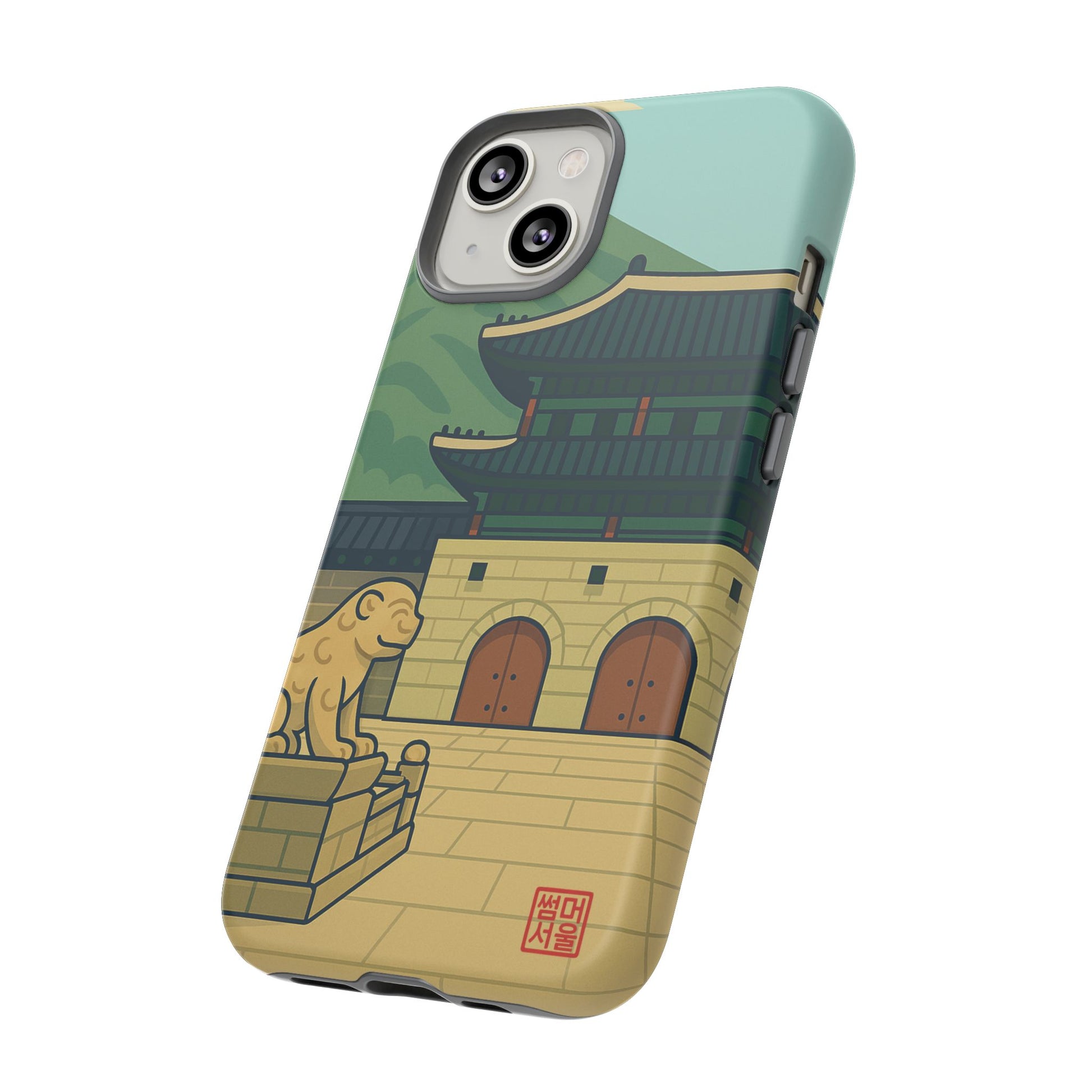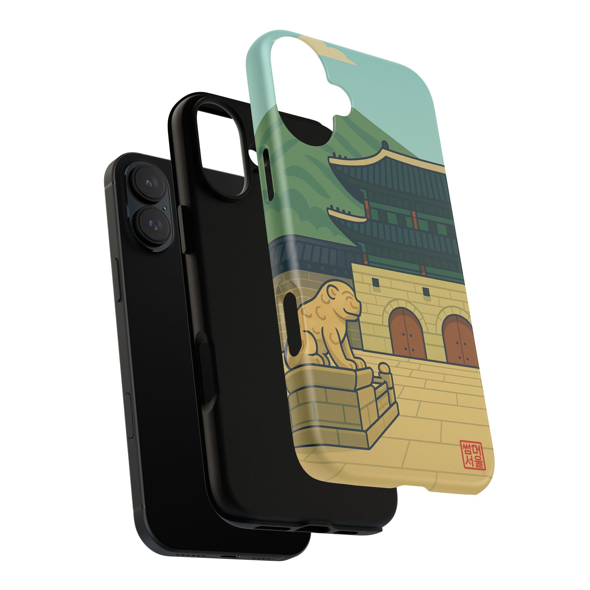 Bold Tradition, Everyday Strength. The Royal Gate Tough Case brings classic Korean architecture into your hands with a durable, artful design. Featuring the legendary Gwanghwamun Gate and stone guardian under a serene mountain backdrop, this case blends power, purpose, and pride — the perfect shield for modern-day royalty. Made for those who stand rooted in heritage and move boldly into the day.